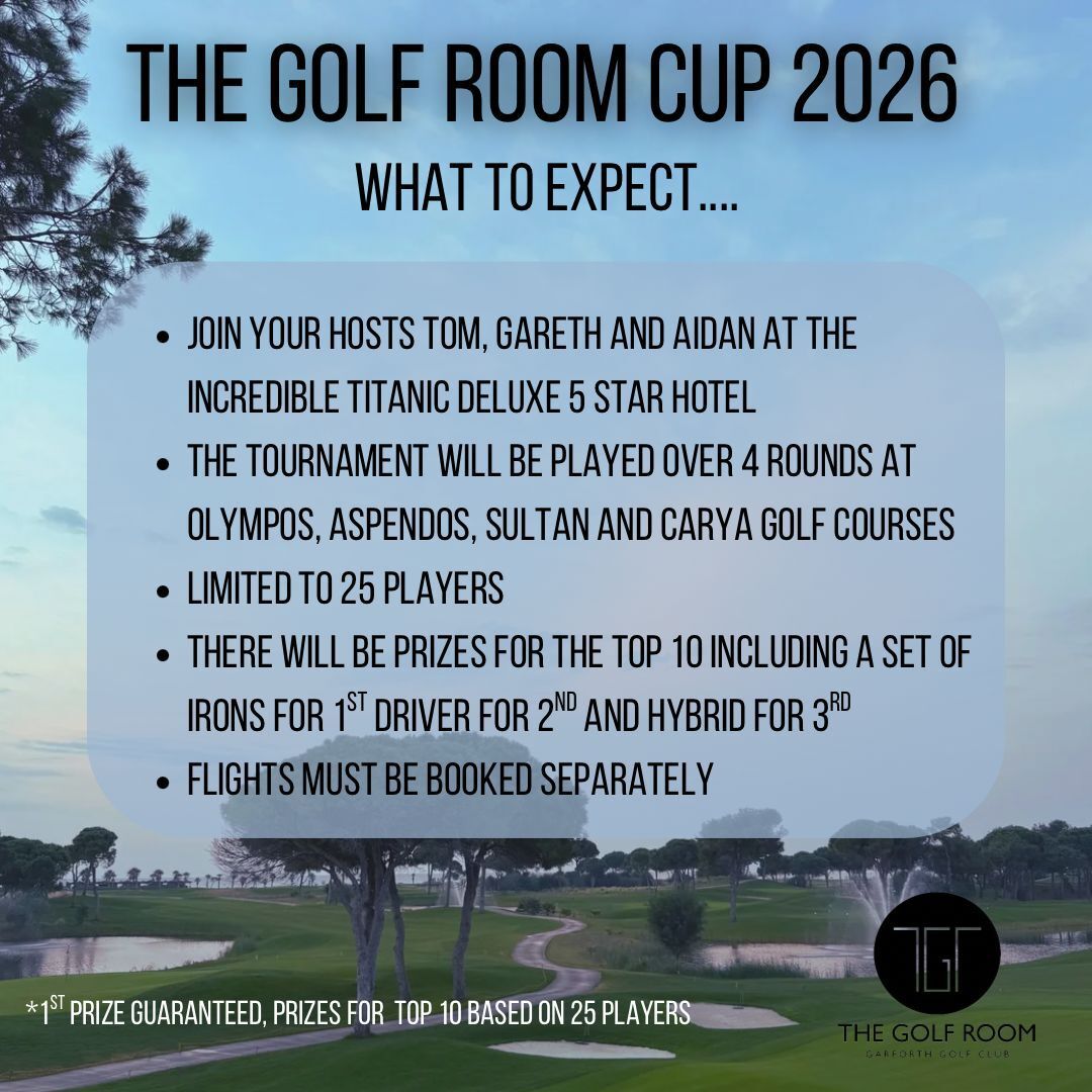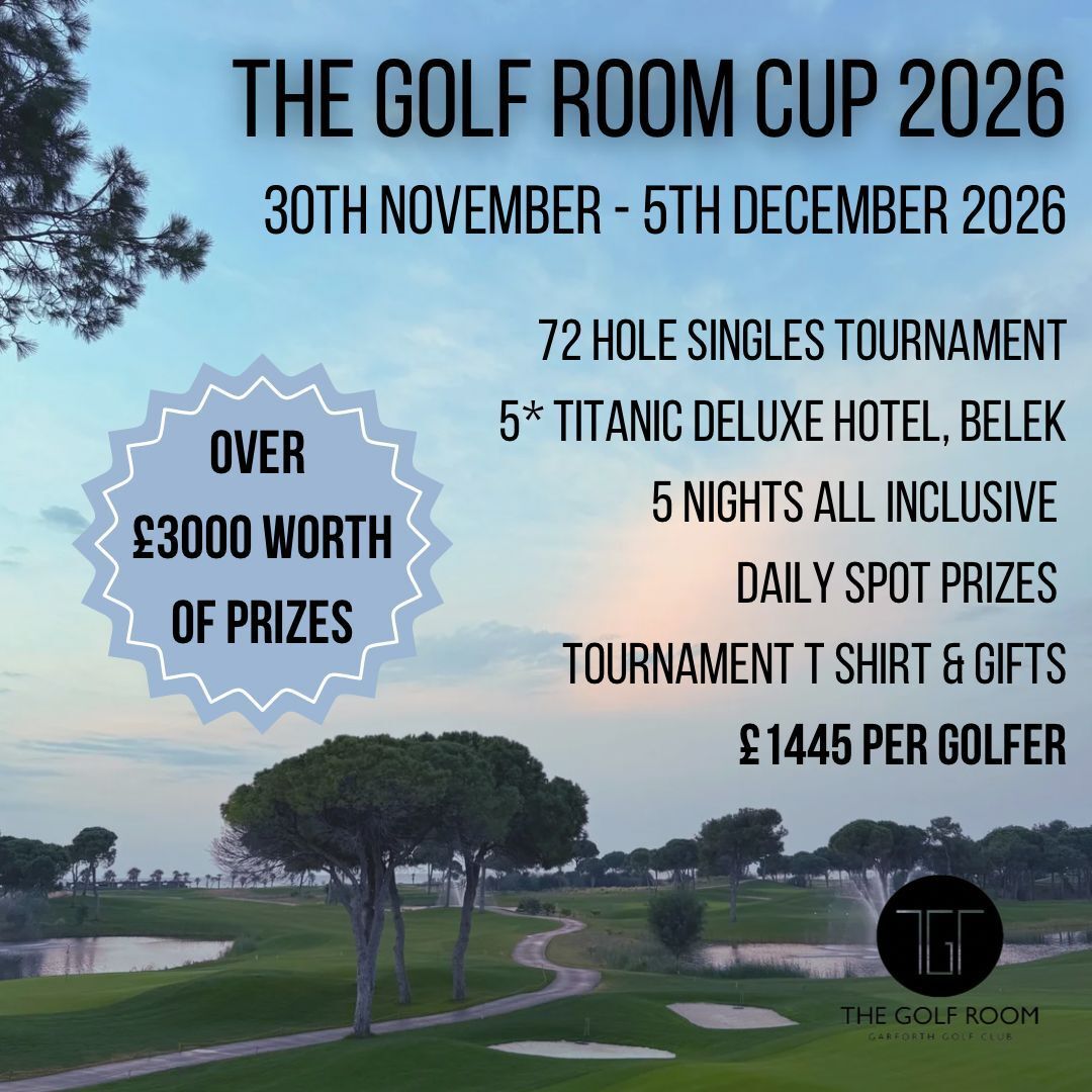 The Golf Room Cup 2026 is now open for entries — and next year we’re heading to the stunning Titanic Deluxe 5? Hotel in Belek, Turkey!